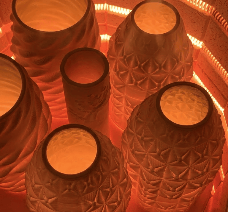 Jedes Objekt, das bei „kata.form“ entsteht, durchläuft einen bewusst gestalteten Prozess, der handwerkliche Präzision mit digitaler Kompetenz verbindet. Christina Klien bringt ihre architektonische Expertise in die CAD-Konstruktion ein, während Dominik Zumtobel mit tiefem Verständnis für Printdesign, Druckverfahren und 3D-Druck die materielle Umsetzung verantwortet. Gemeinsam entwickeln sie Kunstwerke, Dekorationen und Gebrauchsgegenstände in Manufakturqualität – von der ersten Skizze bis zum fertigen Stück. Der Weg beginnt mit dem freien Gedanken, findet Form im digitalen Raum, nimmt Gestalt im 3D-Drucker an, wird durch Handarbeit verfeinert und erhält im Brennofen seine endgültige Identität bei dem jedes Stück ein Unikat bleibt.